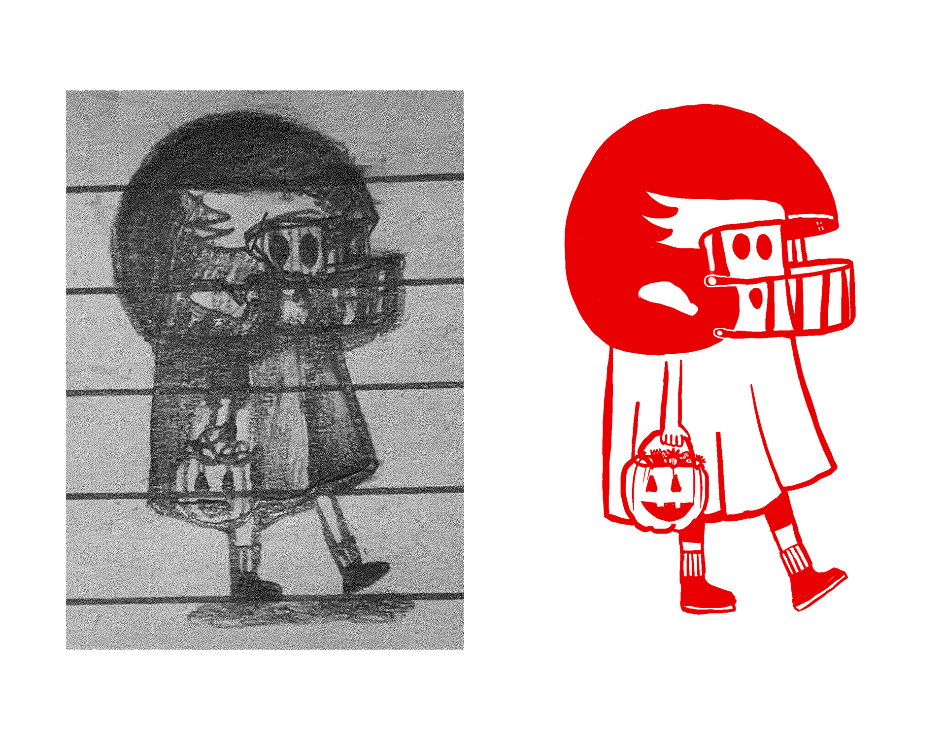After creating my initial sketch, I recolored it in Adobe Illustrator, and threw on some texture in Adobe Photoshop. I wanted to keep the illustration style and colors light-hearted and sweet, with a touch of spooky and of course, Eagles.